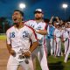 Dillon Lopez celebrates his walk-off base hit that gave Victoria a 10-9 win over the Kelowna Falcons last July 12 (Photo: Justin Morash)