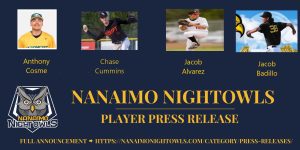 The HarbourCats open on the road May 31 in Kamloops, the start of back-to-back series in Kamloops and Kelowna, before returning for the June 7 home opener against Wenatchee. The HarbourCats will be on the road this summer in Kamloops, Kelowna, Edmonton, Wenatchee, Ridgefield, Port Angeles, Bellingham, and six games in Nanaimo against the Island-rival NightOwls at Serauxmen Stadium. Teams visiting Victoria this year are Wenatchee, Nanaimo, Bellingham, Port Angeles, Kelowna, Edmonton (two series), Kamloops and Corvallis, along with non-league games against the Redmond Dudes, Dub Sea Fish Sticks, the SIBL All-Stars, and Victoria Mavericks All-Stars.